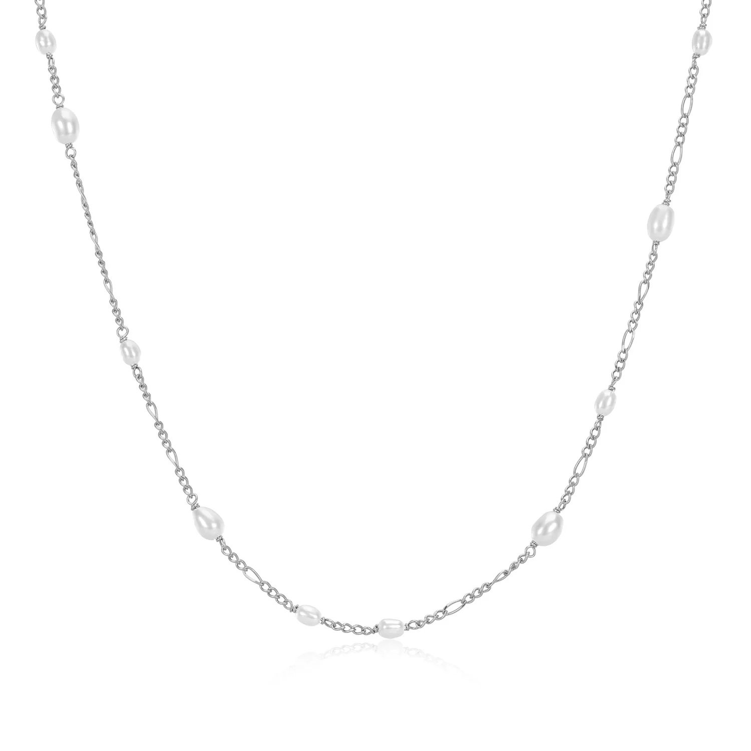 The Aella Pearl Necklace a string of freshwater pearls on an intricate linked silver chain. An elegant style perfect for everyday.